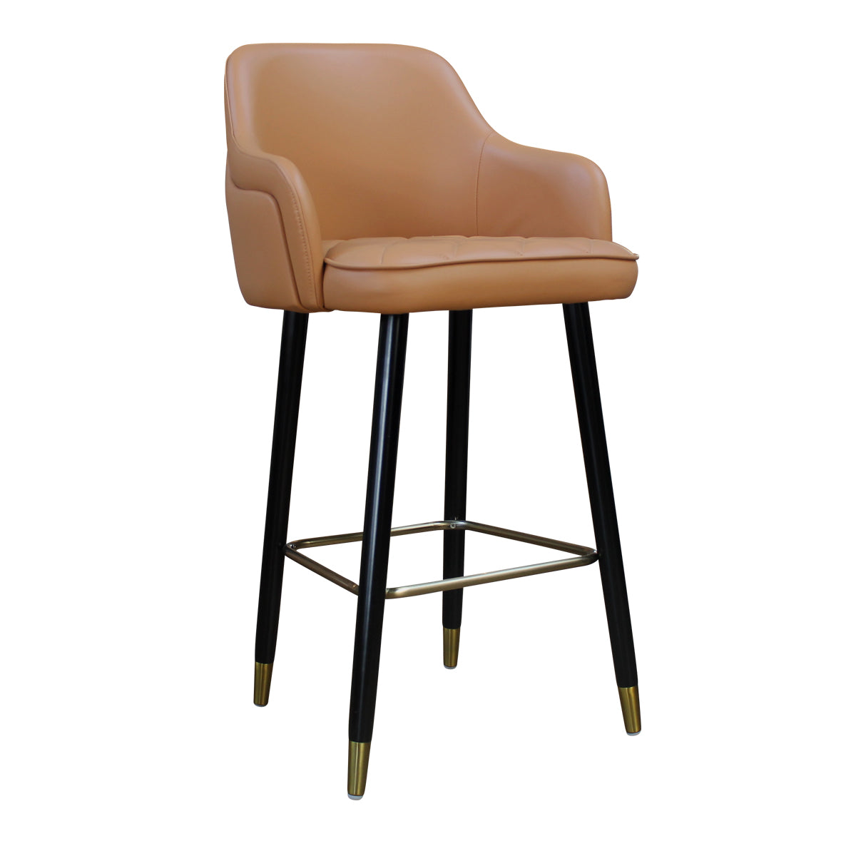 El taburete de bar Dove es una pieza elegante, funcional y duradera. Se compone de una estructura de metal en color negro, con detalles en dorado. Su asiento cuenta con espaldar totalmente acolchonado. Está tapizado en piel sintética de color naranja, relleno de una espuma suave.