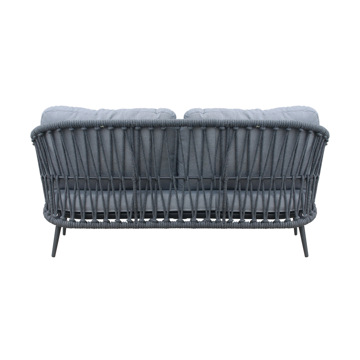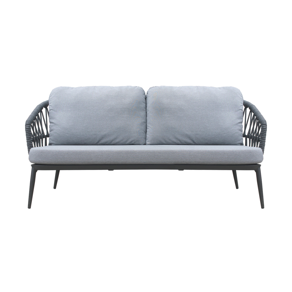 Disfruta del máximo confort y estilo en tus espacios exteriores con este elegante sofá de diseño contemporáneo. Su estructura de aluminio resistente garantiza durabilidad y ligereza, mientras que el tejido de cuerda, de textura sofisticada, aporta un toque moderno y fresco. Los cojines impermeables ofrecen comodidad superior, diseñados para resistir las inclemencias del tiempo, manteniendo tu sofá impecable durante todo el año. Ideal para jardines, terrazas o balcones, este sofá es la opción perfecta para relajarte y disfrutar al aire libre con total tranquilidad.